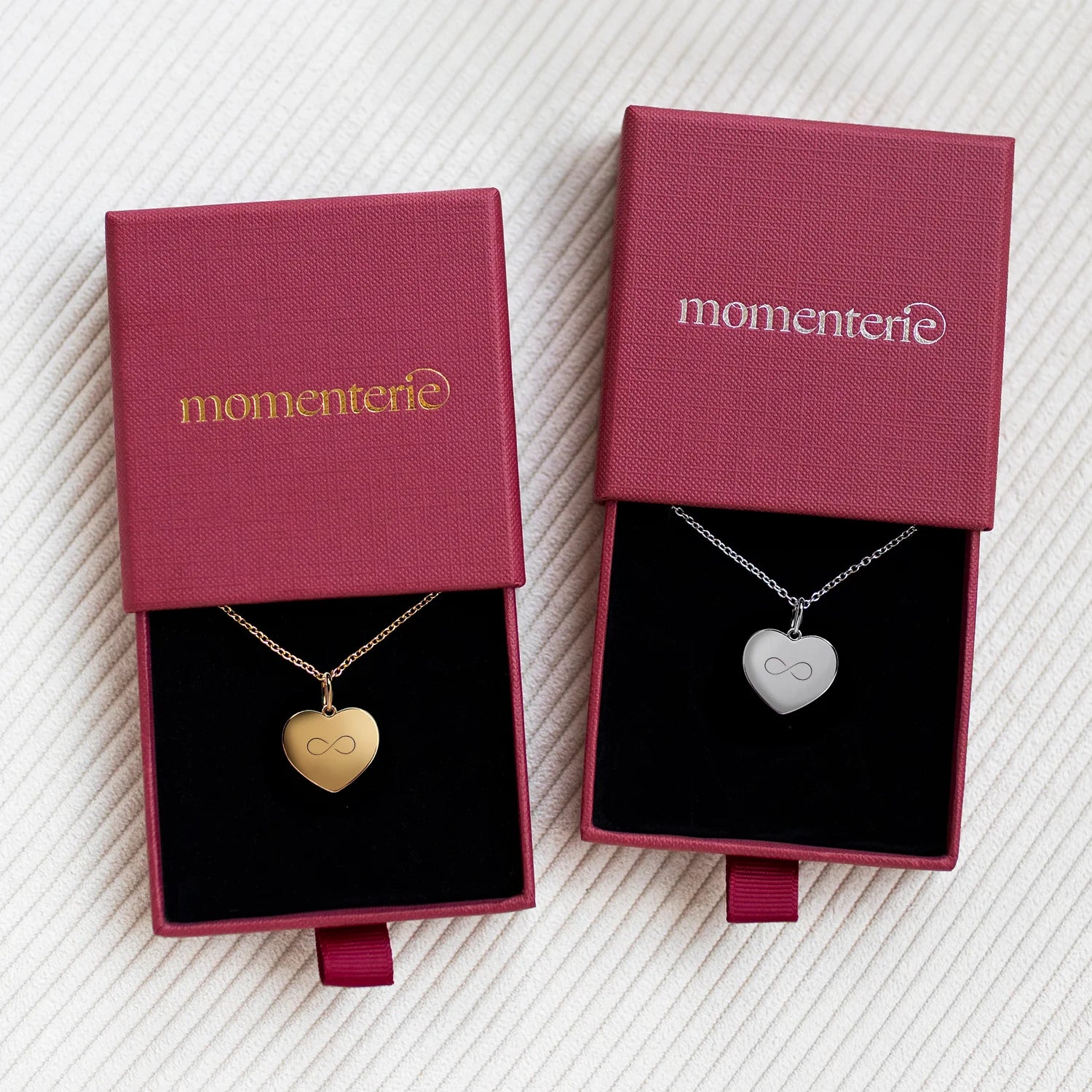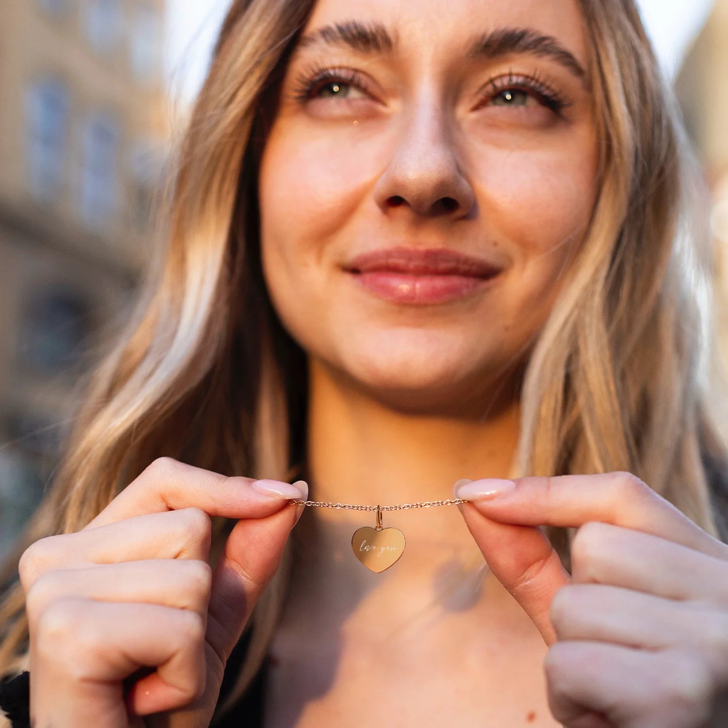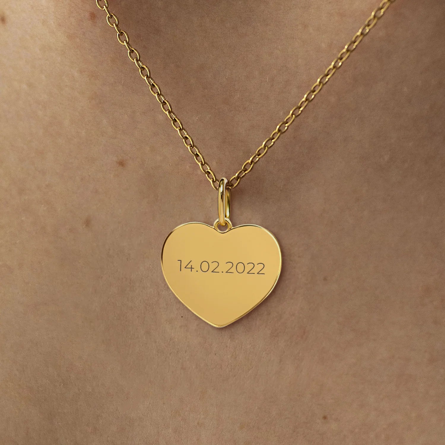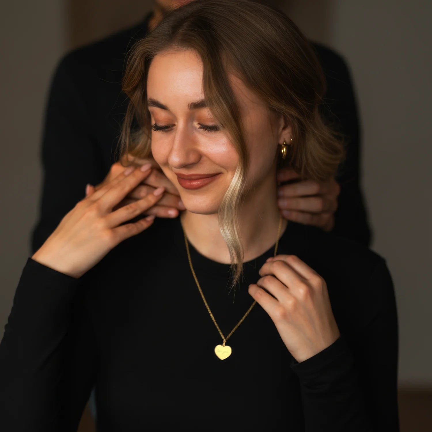Entdecke die verschiedenen Gravurmöglichkeiten und sieh, wie deine personalisierte Herzkette aussehen kann.