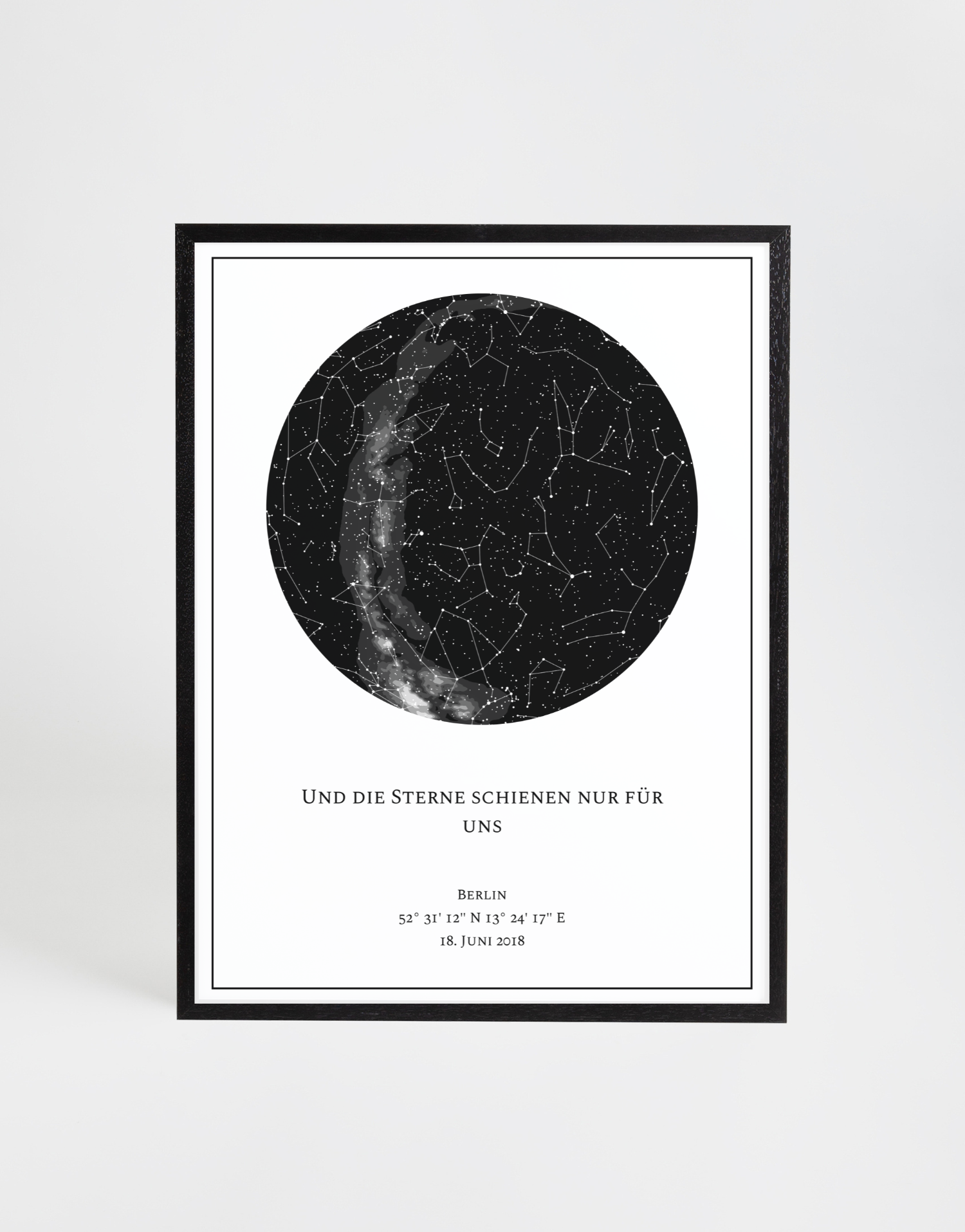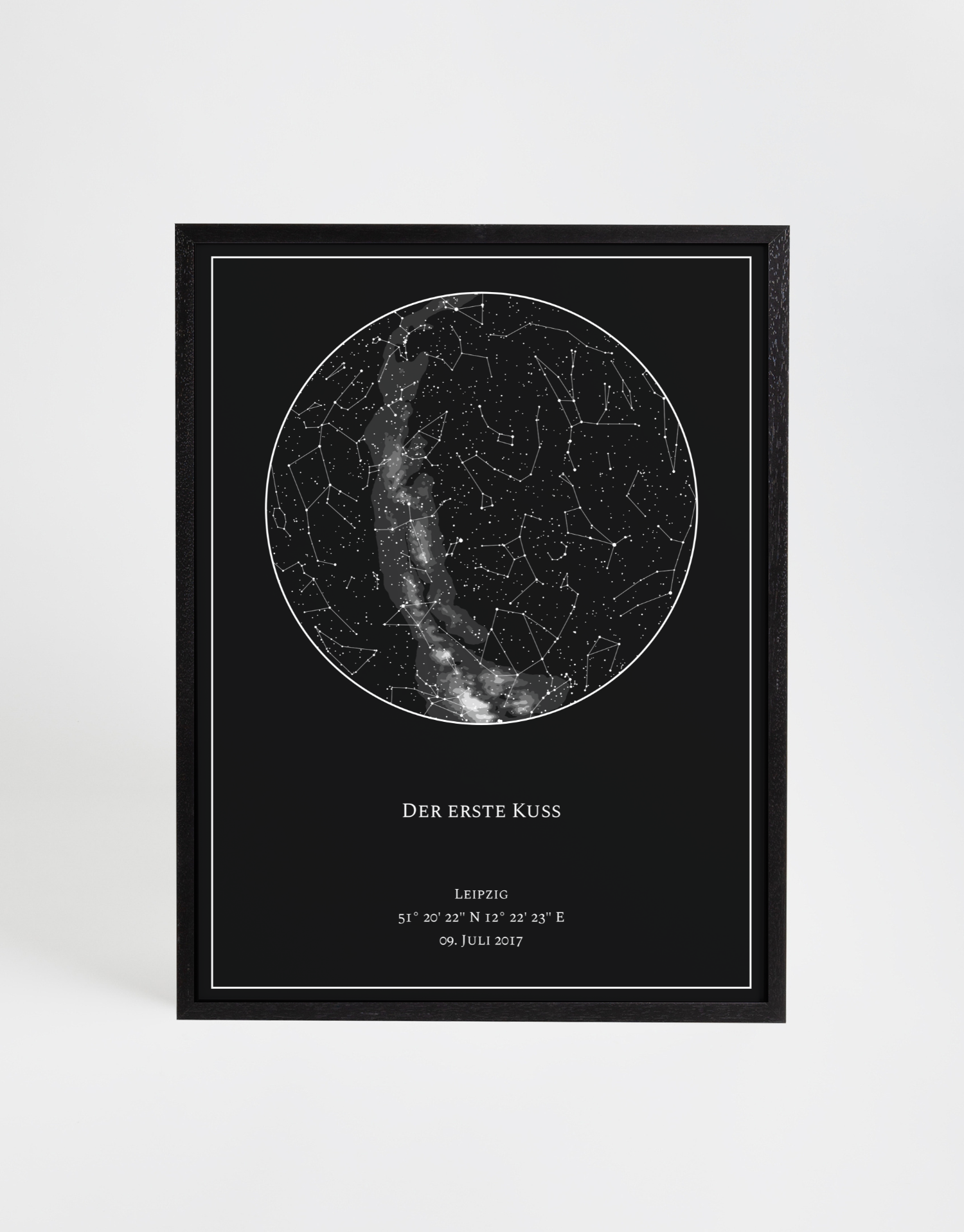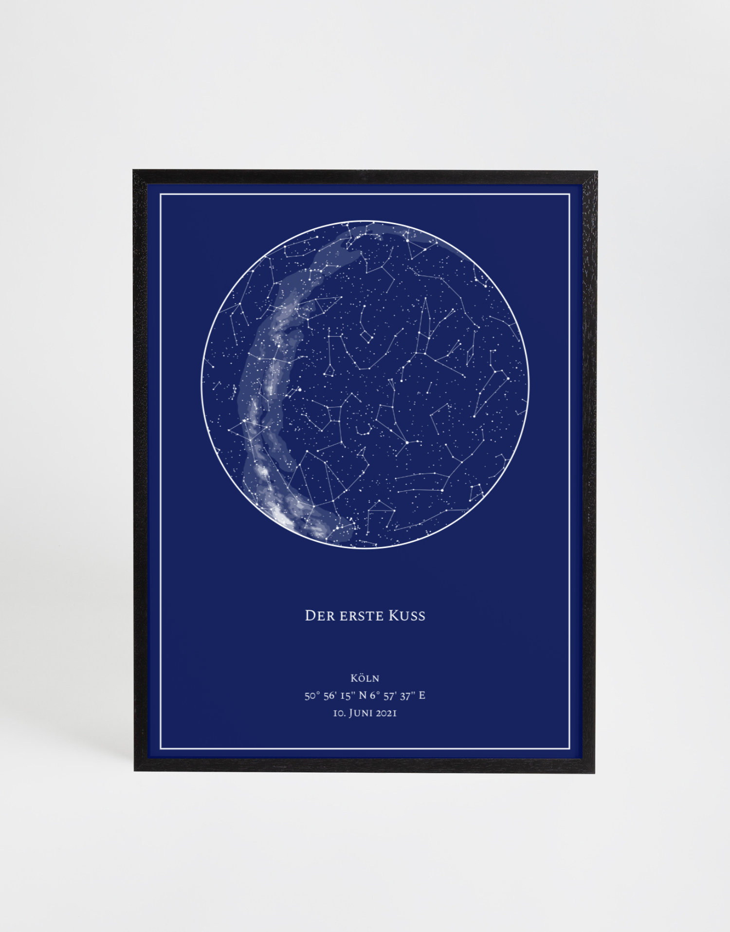 Verewigt den Moment eures ersten Kusses auf einer personalisierten Sternenkarte – unvergesslich für Paare.